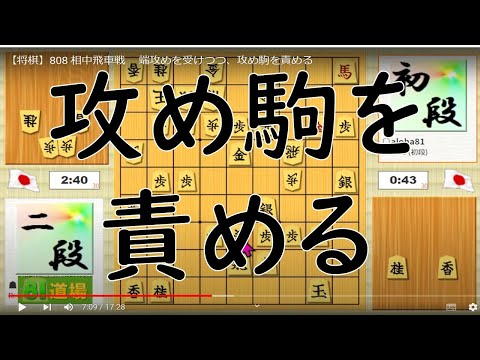 【将棋81道場】808 相中飛車戦 端攻めを受けつつ、攻め駒を責める 良かったら、見てください
